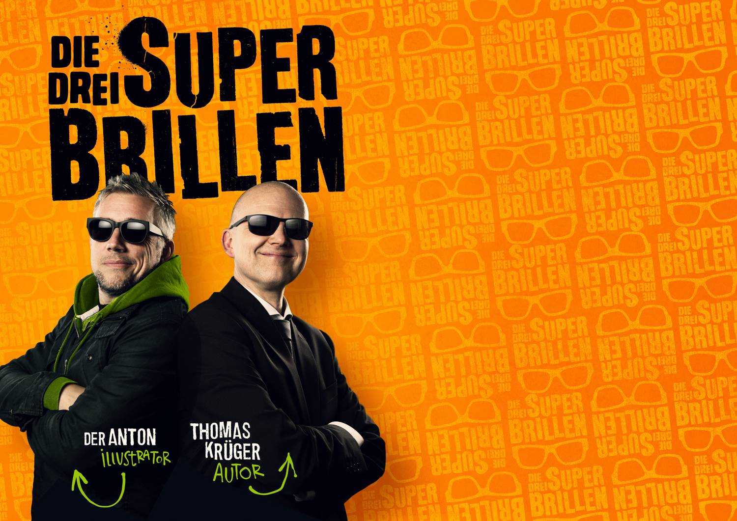 Thomas Krüger & der Anton: „Die drei Superbrillen – wo ist Professor Nitroglitz?“. Illustriertes Kinderbuch ab 8 Jahre. cbt Verlag München 2015. ISBN: 978-3-570-xxxx-x